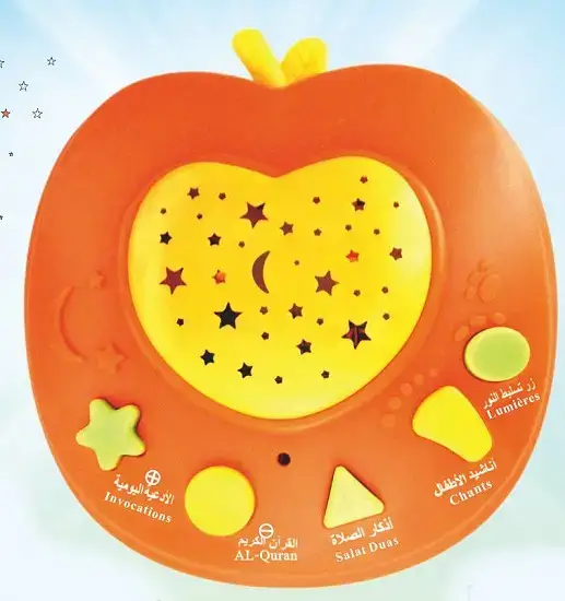 La veilleuse pour enfants, sous forme de pomme, permet l’apprentissage du Coran et des invocations. Ce jouet très ludique, permettra à votre enfant d’apprendre le Coran, des invocations, des bonnes paroles, l’appel à la prière, des chants le tout rien qu’en pressant sur l’un de ses 5 boutons.