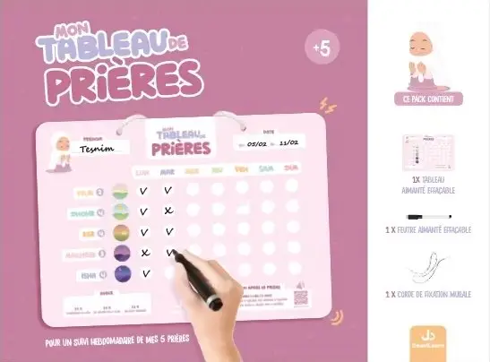 5 prières par jour, c’est beaucoup pour les petits loups. Mais avec notre tableau magique, ils vont adorer les accomplir ! C’est comme un jeu où chaque jour, ils peuvent compléter leur mission en coloriant une case. Ils vont se sentir fiers de leur responsabilité religieuse et grandir spirituellement.