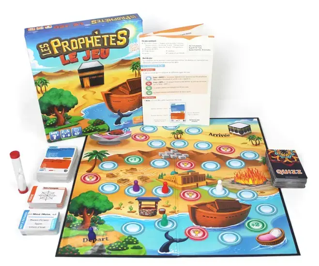 Préparez-vous pour un jeu épique rempli de défis et de 400 questions à couper le souffle! “Les Prophètes, Le jeu” est le jeu islamique ultime pour les enfants de 7 ans et plus, jouable de 2 à 6 joueurs avec une durée de 45 minutes environ. Qui sera le premier à atteindre la Ka’ba en répondant aux questions et en relevant les défis?