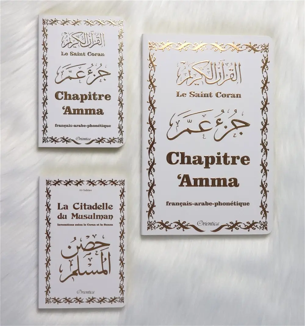 - Le Saint Coran – Chapitre Amma (Jouz’ ‘Ammâ) français-arabe-phonétique – Couverture blanche dorée