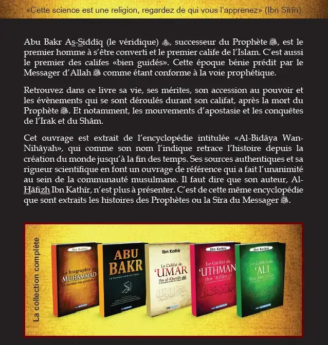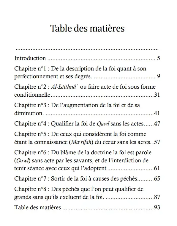 Je me suis astreint à ne citer, pour un quelconque point, que le texte faisant foi, sans citer les chaînes de garants. Je me suis astreint également à ne citer qu’un ou deux ouvrages parmi les nombreux autres cités dans la version complète. Quiconque en voudrait connaître le compagnon ayant rapporté cela ou les autres sources faisant mention de ce texte devrait revenir à l’original.