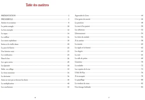 Au terme de ce livre, l’enfant aura découvert plus de quarante paroles, toutes profitables, dont il pourra, à son tour, se rappeler (in châ’ Allâh) au gré des circonstances de sa jeunesse.