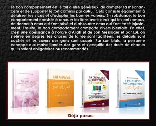 Le « bon comportement » consiste à être généreux,de dompter ses mauvais penchants et de supporter le tort commis par autrui. Cela consiste également à délaisser les vices et à adopter les valeurs conformes à l’Islam.