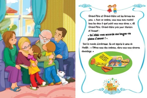 « J’apprends mon hadith » explique aux enfants comment obéir aux enseignements du prophète Mohamed (saw) dans la vie quotidienne. Les personnages principaux, un frère et une sœur, nommés Meriem et Youssef, ont une boîte à Hadith chez eux. Chaque livre de cette série concerne un Hadith particulier. Les membres de la famille essaient d’appliquer ce Hadith dans leur vie tout au long de l’histoire. Les enfants s’identifieront aux héros de l’histoire, ce qui facilitera leur apprentissage et leur pratique de tous les Hadiths.