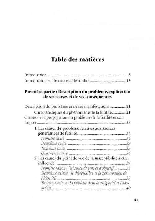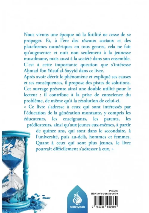 « La lutte contre la futilité » d’Ahmad Ibn Yusuf al-Sayyid est une analyse profonde de la propagation de la futilité dans l’ère moderne, exacerbée par les réseaux sociaux et les plateformes numériques. Cet ouvrage examine les causes, les conséquences et propose des solutions pour contrer ce phénomène, s’adressant principalement aux éducateurs, parents, et jeunes adultes conscients des défis actuels.