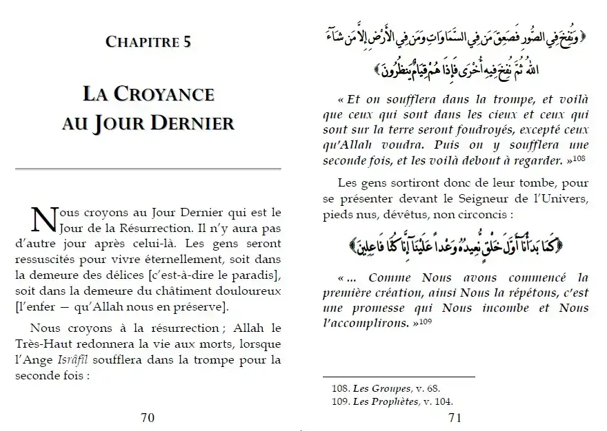 Sûrat Al-Mursalât – Les Envoyés à Sûrat ; Sûrat Al-Insân – L’Homme ; Sûrat Al-Qiyâma – La Résurrection.