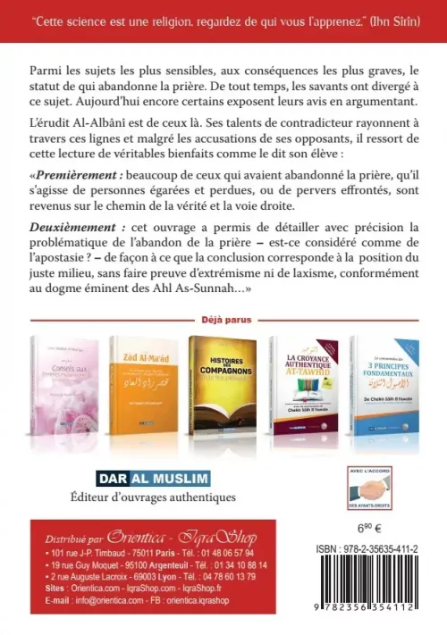– Deuxièmement : cet ouvrage a permis de détailler avec précision la problématique de l’abandon de la prière – est-ce considéré comme de l’apostasie ? – de façon à ce que la conclusion corresponde à la position du juste milieu, sans faire preuve d’extrémisme ni de laxisme, conformément au dogme éminent des Ahl As-Sunnah… »