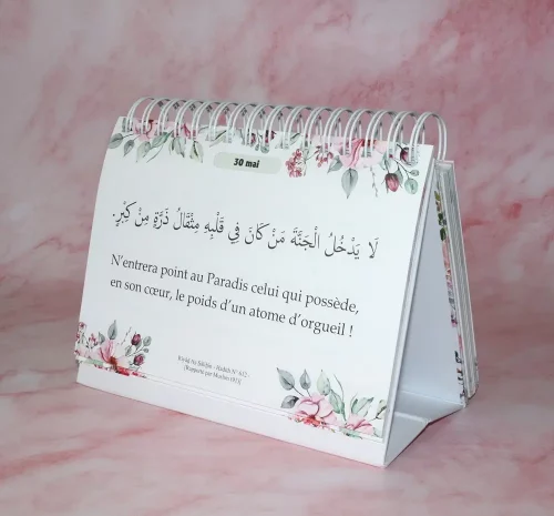 Le calendrier est simple, authentique et bénéfique, avec un thème et une décoration graphique uniques pour chaque mois. Et le meilleur dans tout ça? C’est un calendrier perpétuel que vous pourrez utiliser chaque année – pas de date de péremption! En bref, « Un Hadith Chaque Jour » est un incontournable pour tous les amoureux de la spiritualité et de l’apprentissage.
