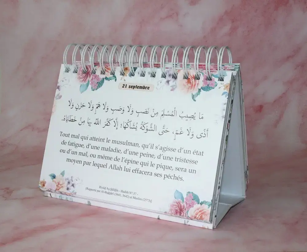Inspiré de Riyâd As-Sâlihîn et des 40 hadiths Nawawî, ce calendrier est un incontournable pour tous les musulmans souhaitant approfondir leurs connaissances religieuses et parfaire leur pratique cultuelle. Chaque jour, vous découvrirez un nouveau hadith authentique à méditer et à appliquer dans votre vie quotidienne, vous aidant ainsi à vous enrichir spirituellement et à suivre la voie de notre bien-aimé Muhammad (SAW).