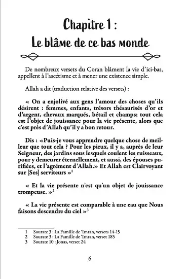 En revanche, quiconque prend une part plus grande que ce dont il a besoin tombera dans le blâmable, et passera du profit à la nuisance. Il deviendra distrait de la recherche de l’au-delà. »
