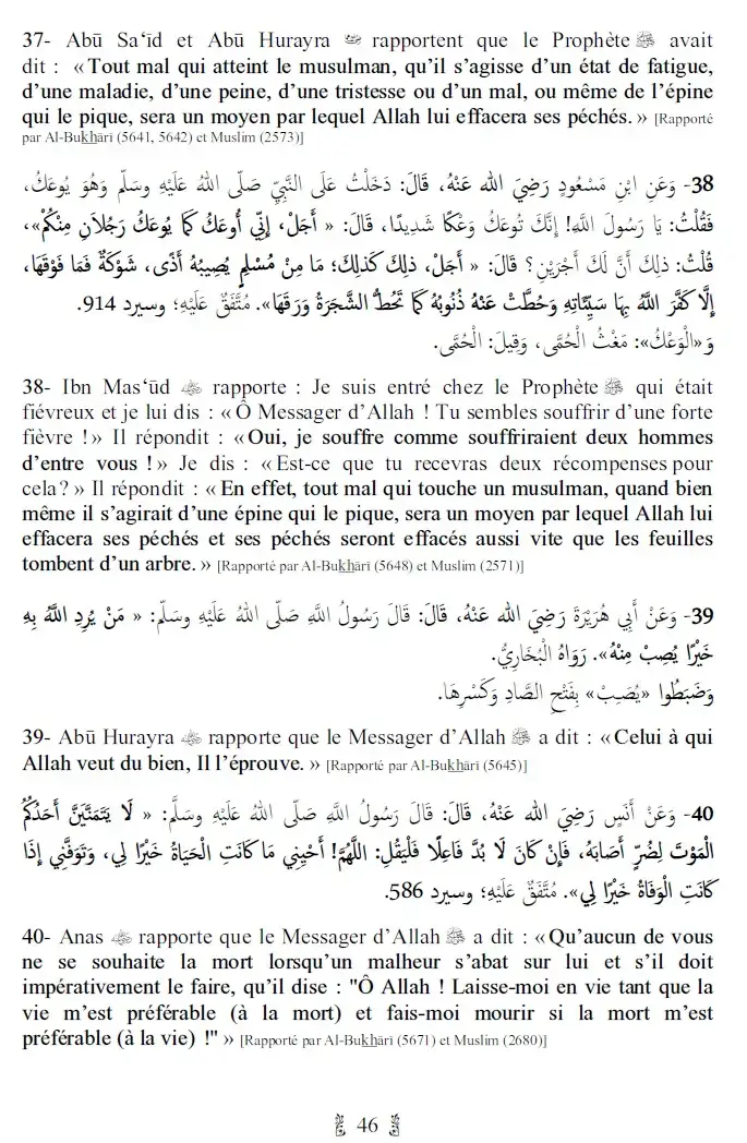 « Il incombe à quiconque aspire à l’au-delà de connaître ces hadiths, eu égard aux points importants qu’ils renferment et aux indications qu’ils apportent quant à l’ensemble des actes d’adoration. C’est évident pour quiconque médite ces textes. C’est à Allah que je m’en remets, à Lui que je délègue mon affaire et sur Lui que je compte. À Lui appartiennent la louange et le bienfait, et en Lui reposent le succès et l’infaillibilité. »
