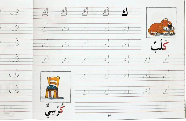 L’aspect esthétique du cahier n’enlève rien à sa précision. En effet, ses pages quadrillées et ses lignes d’écriture espacées, permettront à l’enfant de se familiariser avec les tracés précis de chaque lettre dans toutes ses graphies relatives à ses 4 positions (initiale, médiane, finale et isolée), avec des exemples concrets pour chaque cas, de même que des illustrations, tout en couleurs, pour chaque mot proposé.