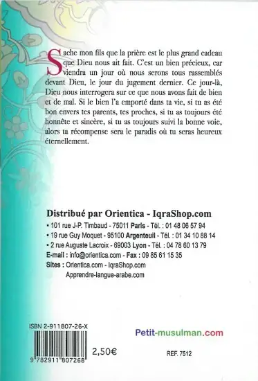 Pour toutes ces raisons, l’auteur a rédigé ce livre dans lequel il a mentionné les conditions, les piliers, les obligations et les actes recommandés de la prière afin d’aider le Musulman à l’accomplir comme il se doit.